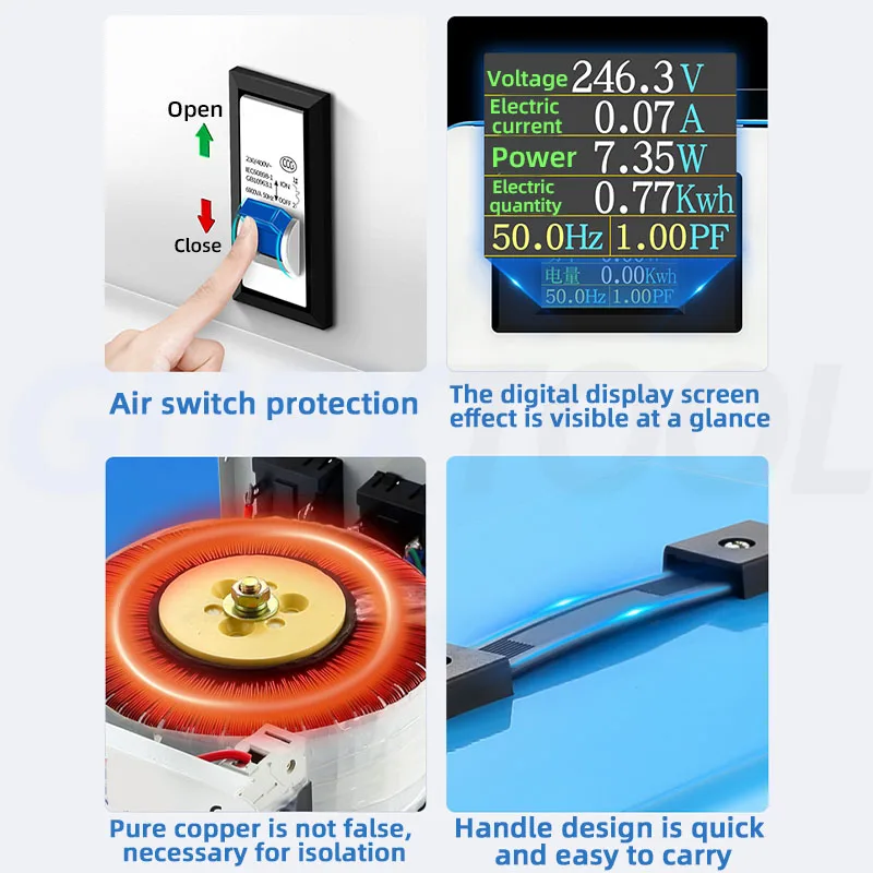 ZHENGXI Isolation Transformer 120V to 120V 500W Audio Voltage Converter, HD Display, No Niose, 2 Output Sockets
